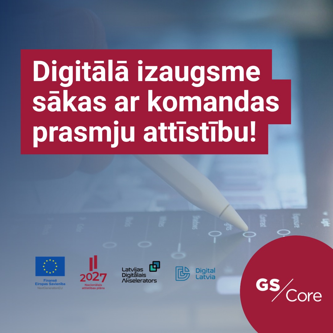 SIA GS Core ir saņēmis atbalstu darbinieku digitālo prasmju pilnveidei Latvijas Digitālā akseleratora īstenotā projekta “Digitālo prasmju attīstība jaunu produktu un tehnoloģiju attīstībai Latvijas komersantos” (Līguma Nr. 2.3.1.2.i.0/1/24/I/CFLA/002) ietvaros.
